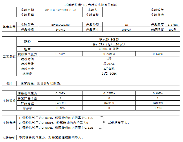 不同噴粉供氣壓氣對造成LCD液晶屏(內(nèi)污)粉聚的影響